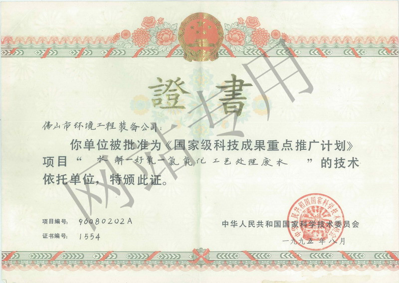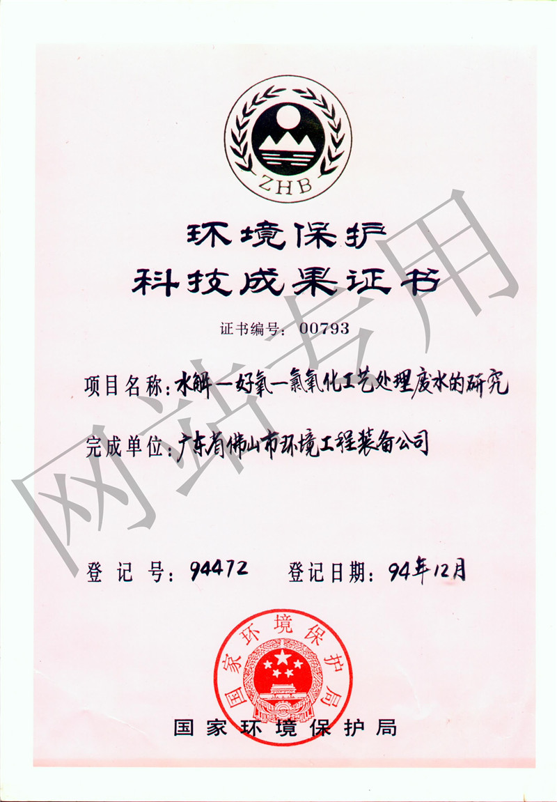 国家环保科技成果证书